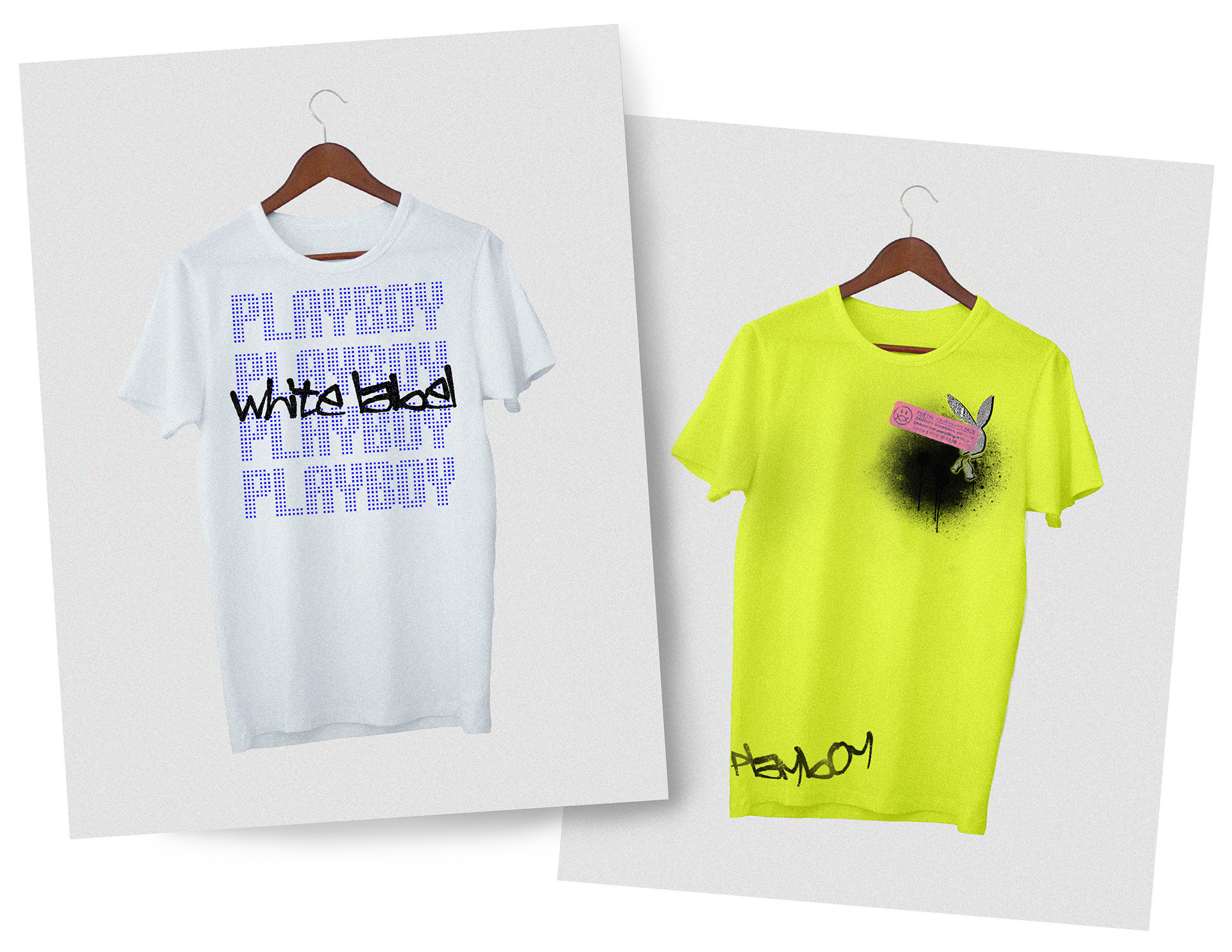 Playboy White Label is a streetwear focused spinoff brand by Playboy. Having collaborated with LA's Anti Social Social Club, San Fransisco based Illest, and Japanese streetwear brand NEIGHBORHOOD, Playboy White Label was primed and ready to develop a voice of its own, landing on themes of digital malfunction, DIY, and graffiti.